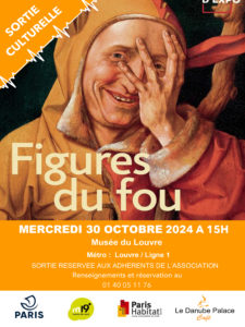Sortie culturelle au Musée du Louvre avec l'exposition Les figures du fou, mercredi 30 octobre 2024 à 10h30. Infos pratiques : M°Ligne 1 : Station : Louvre 10 à 20 places disponibles pour une sortie en groupe entièrement financée par...