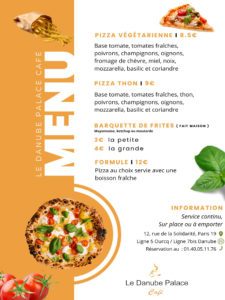 La restauration se déroule, tous les jours en service continu sur place à emporter et ou en livraison. Vous pouvez réserver votre plat ou bien le commander directement sur place. Ci-dessous le menu à télécharger ou à imprimer menu le...