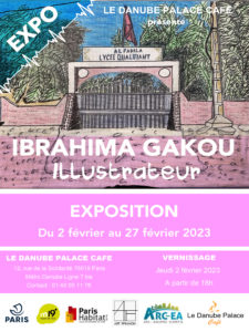 Vernissage de l'illustrateur Ibrahima Gakou au Danube Palace café le jeudi 2 février 2023 à 18h. Ses œuvres seront exposées au café du 2 février au 27 février 2023. Venez nombreux ! Au plaisir de vous accueillir !